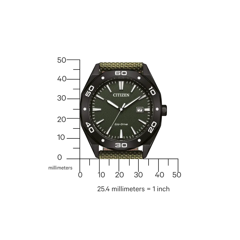 Citizen BM7635-01X Eco-Drive Kumaş Kordon Çelik Kasa 10 ATM Suya Dayanıklı Yeşil Renk Erkek Kol Saati