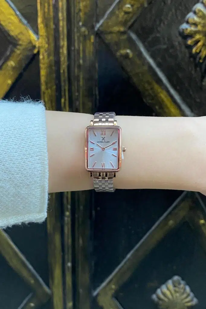 Etiketler | Daniel Klein DKE.1.10750 Dikdörtgen Kasa Romen Rakamlı Minimal Tasarım Kadın Kol Saati |