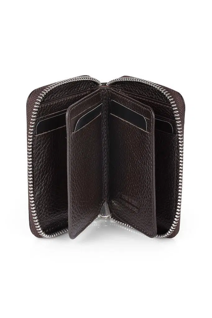Daniel Klein DKL0796-3 Dikdörtgen Şeklinde Fermuarlı Gerçek Deriden Üretilme Kahverengi Kadın Cüzdan&Kartlık