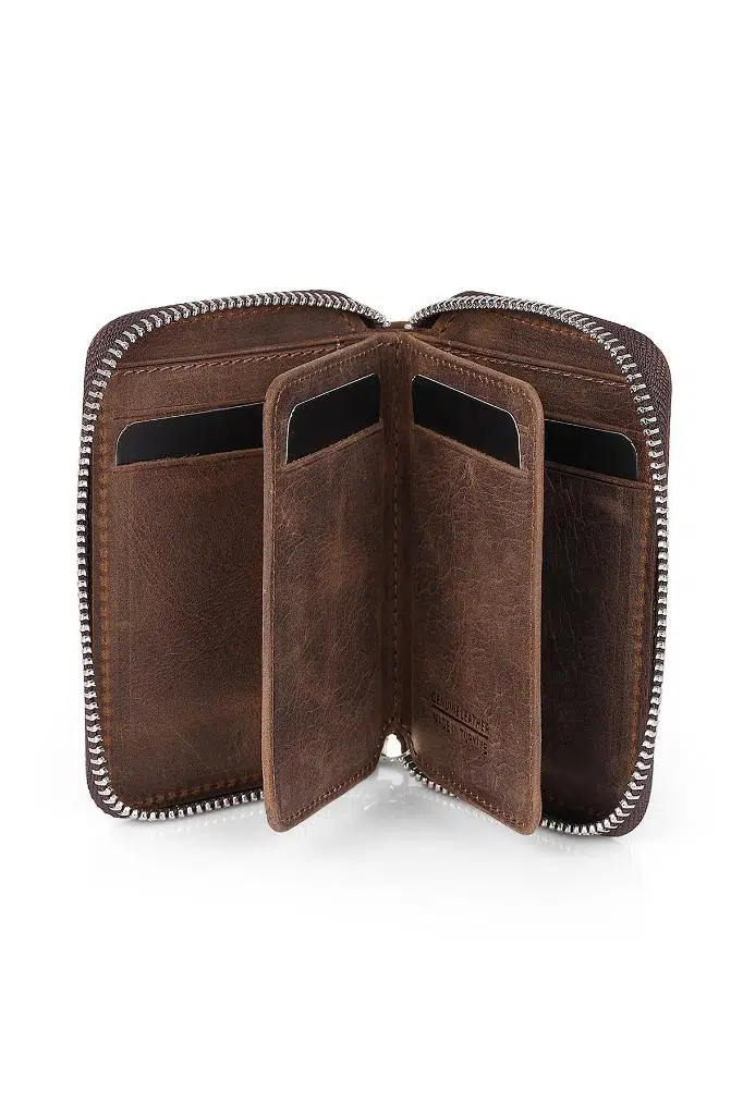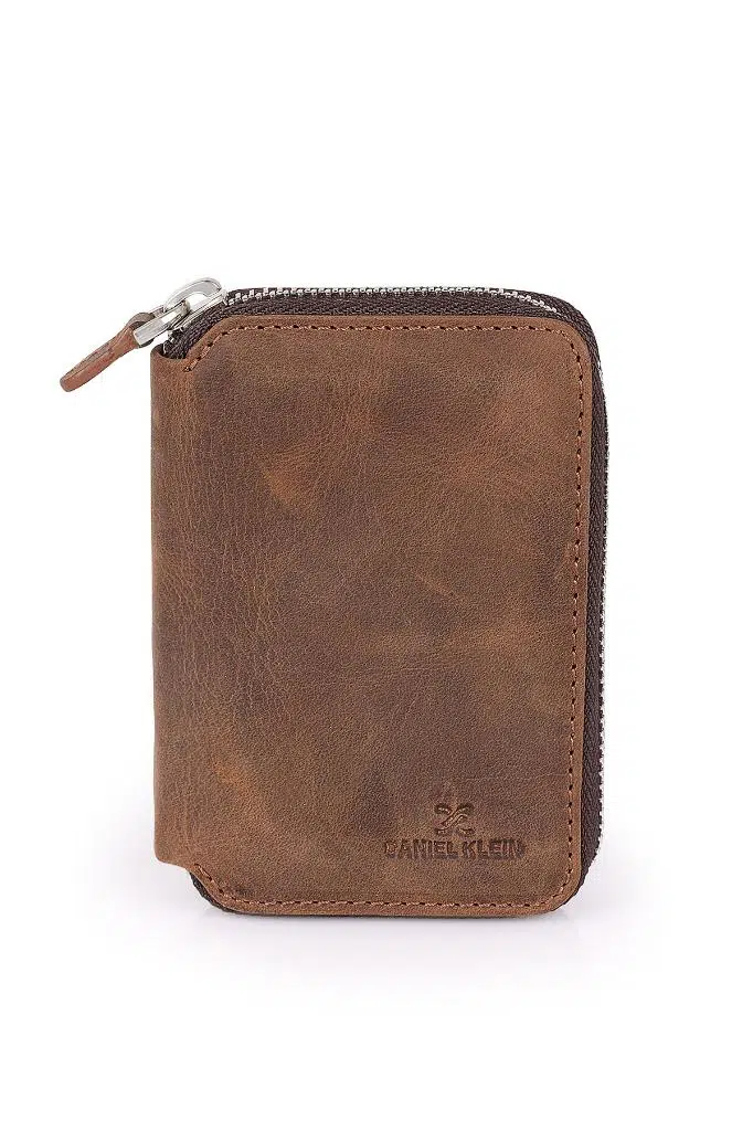 Daniel Klein DKL0796-4 Dikdörtgen Şeklinde Fermuarlı Gerçek Deriden Üretilme Kahverengi Kadın Cüzdan&Kartlık