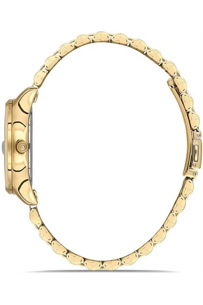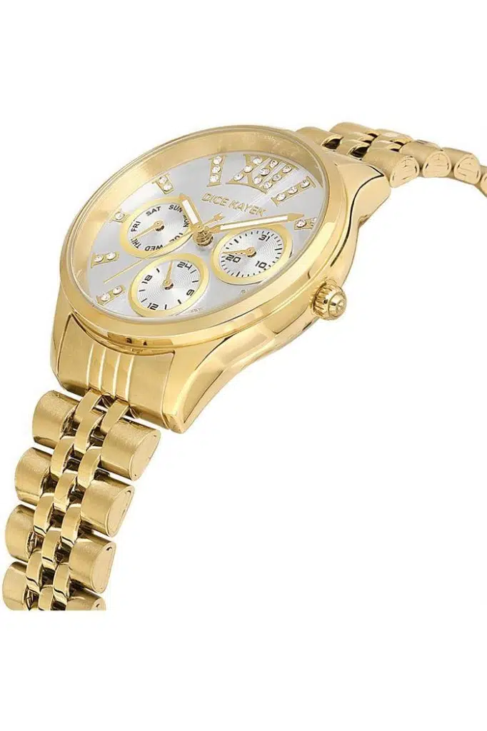 Dice Kayek DK.1.AG1377.03 Taşlı Tasarım Çelik Kordon Çelik Kasa 5 ATM Suya Dayanıklı Altın Renk Kadın Kol Saati