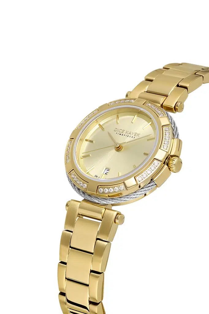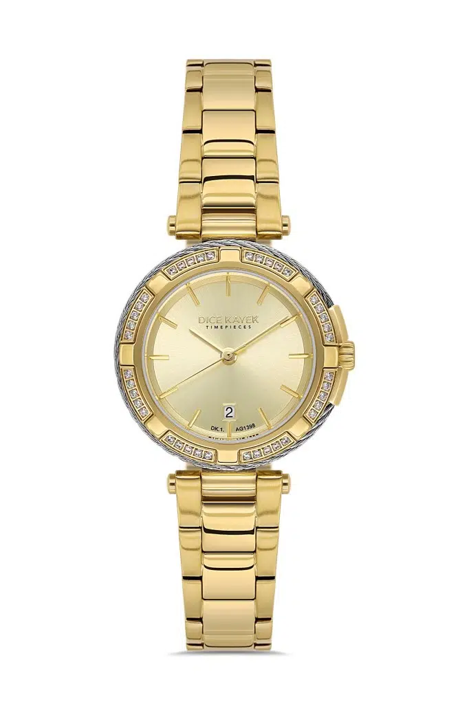 Dice Kayek DK.1.AG1398.04 Takvimli Çelik Kasa 5 Atm Suya Dayanıklı Altın Renk Kadın Kol Saati