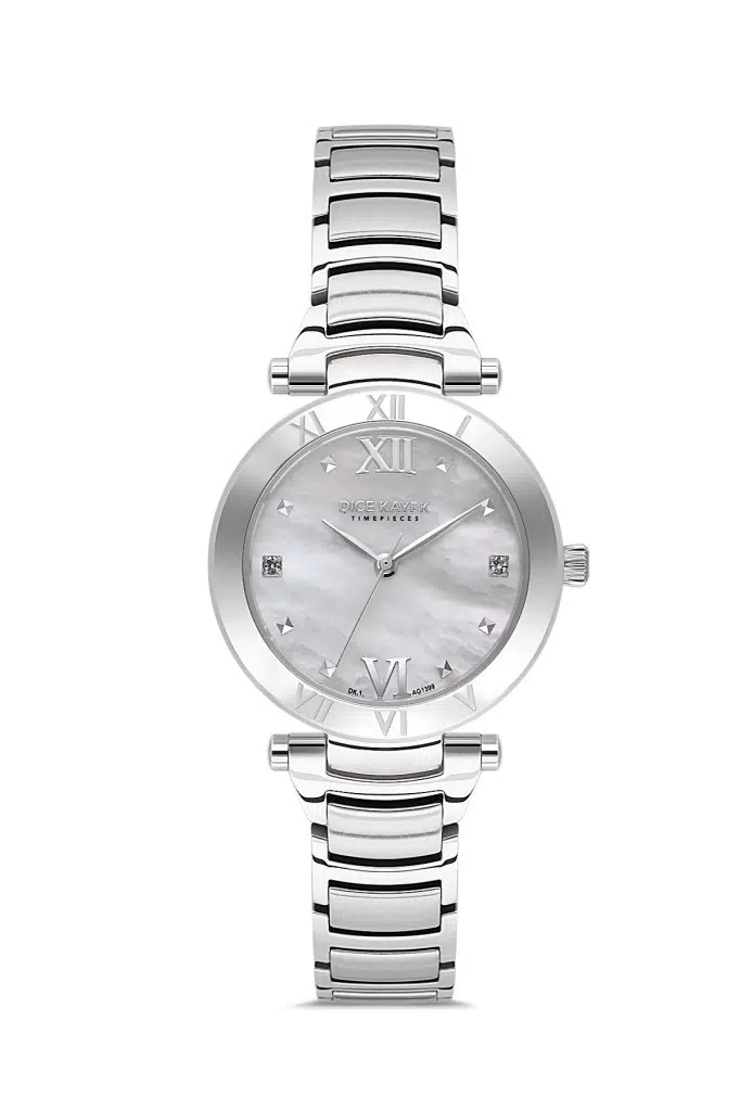 Dice Kayek DK.1.AG1399.01 Taşlı Tasarım Sedef Kadranlı Çelik Kordon Çelik Kasa 5 ATM Suya Dayanıklı Metalik Renk Kadın Kol Saati