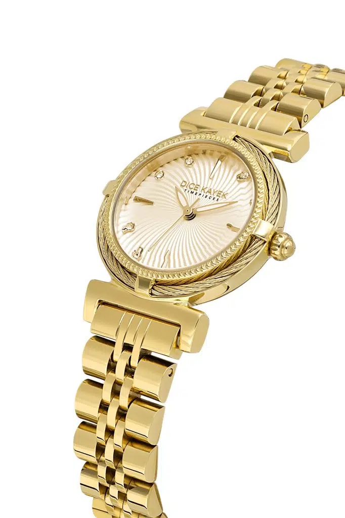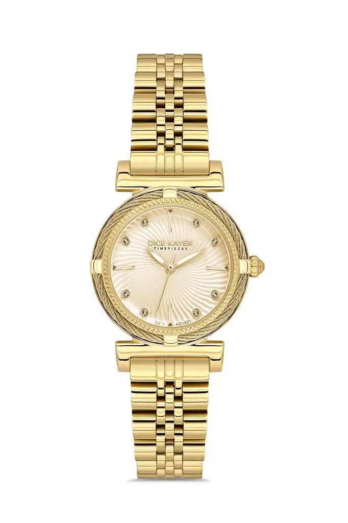 Dice Kayek DK.1.AG1401.05 Taşlı Tasarım Çelik Kordon Çelik Kasa 5 ATM Suya Dayanıklı Altın Renk Kadın Kol Saati