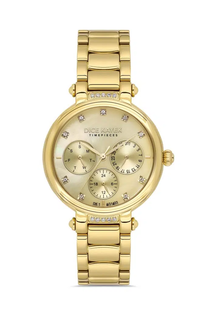 Dice Kayek DK.1.AG1403.05 Fonksiyonlar Aktif 5 Atm Suya Dayanıklı Altın Renk Kadın Kol Saati