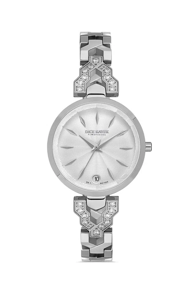 Dice Kayek DK.1.AG1404.01 Taşlı Tasarım Çelik Kordon Çelik Kasa 3 ATM Suya Dayanıklı Metal Renk Kadın Kol Saati