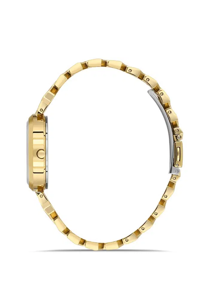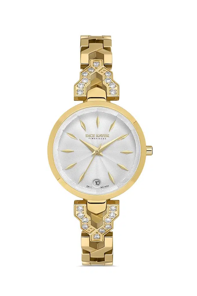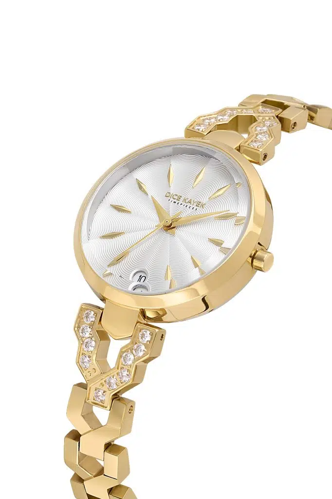 Dice Kayek DK.1.AG1404.03 Taşlı Tasarım Çelik Kordon Çelik Kasa 3 ATM Suya Dayanıklı Altın Renk Kadın Kol Saati