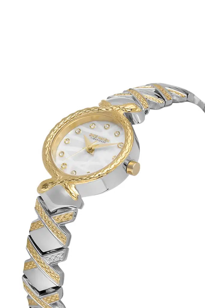 Etiketler | Dice Kayek DK.1.AG1408.03 Taşlı Tasarım Çelik Kordon Çelik Kasa 5 ATM Suya Dayanıklı Metalik-Altın Renk Kadın Kol Saati |