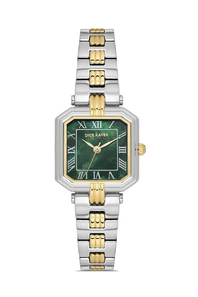 Dice Kayek DK.1.AG1412.05 Kare Kadran Çelik Kordon Çelik Kasa 3 ATM Suya Dayanıklı Metalik-Altın Renk Kadın Kol Saati