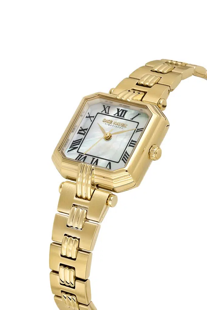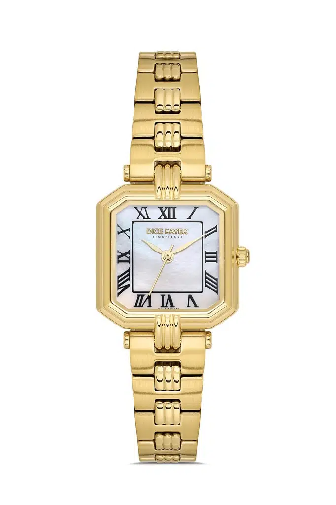 Dice Kayek DK.1.AG1412.06 Sedefli Kare Kadran Çelik Kordon Çelik Kasa 3 ATM Suya Dayanıklı Altın Renk Kadın Kol Saati