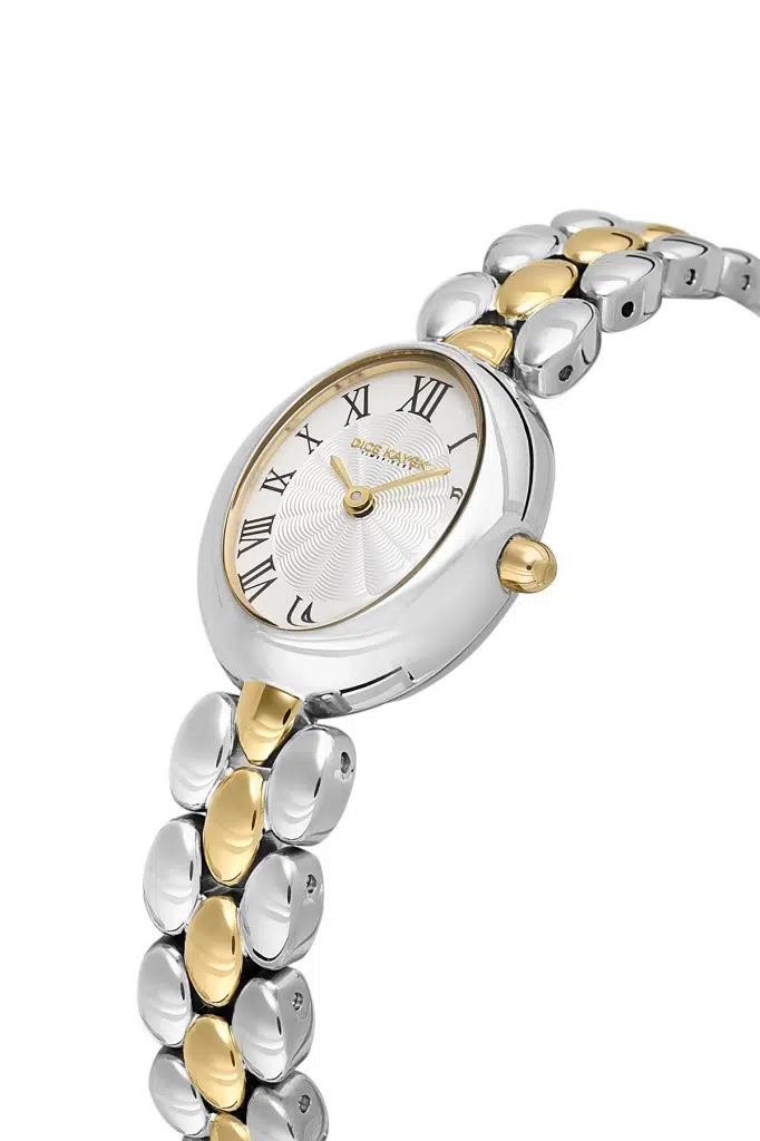 Dice Kayek DK.1.AG1422.02 Romen Rakamlı Oval Kadranlı Çelik Kordon Çelik Kasa 3 ATM Suya Dayanıklı Metalik-Altın Renk Kadın Kol Saati