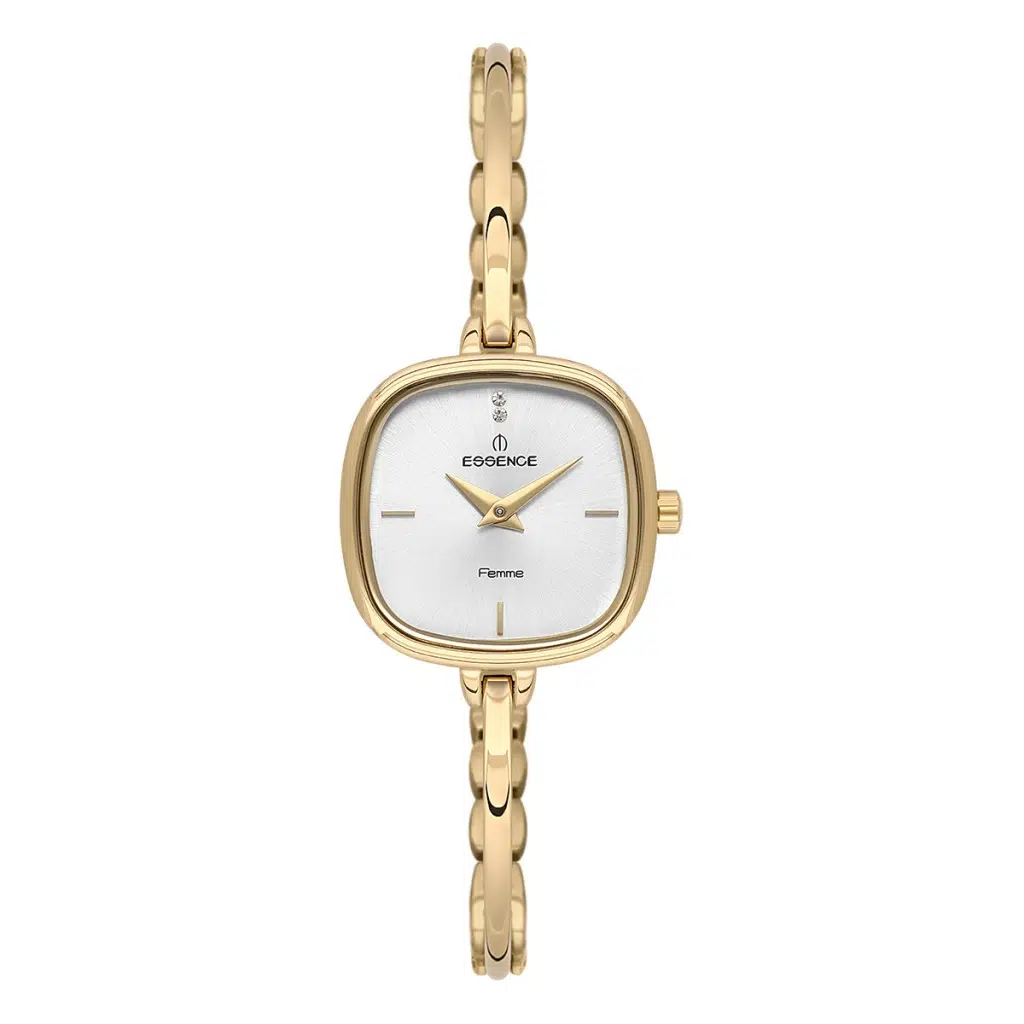 Etiketler | Essence D1222.130 Kare Kadran Metal Kordon Metal Kasa 3 ATM Suya Dayanıklı Altın Renk Kadın Kol Saati |
