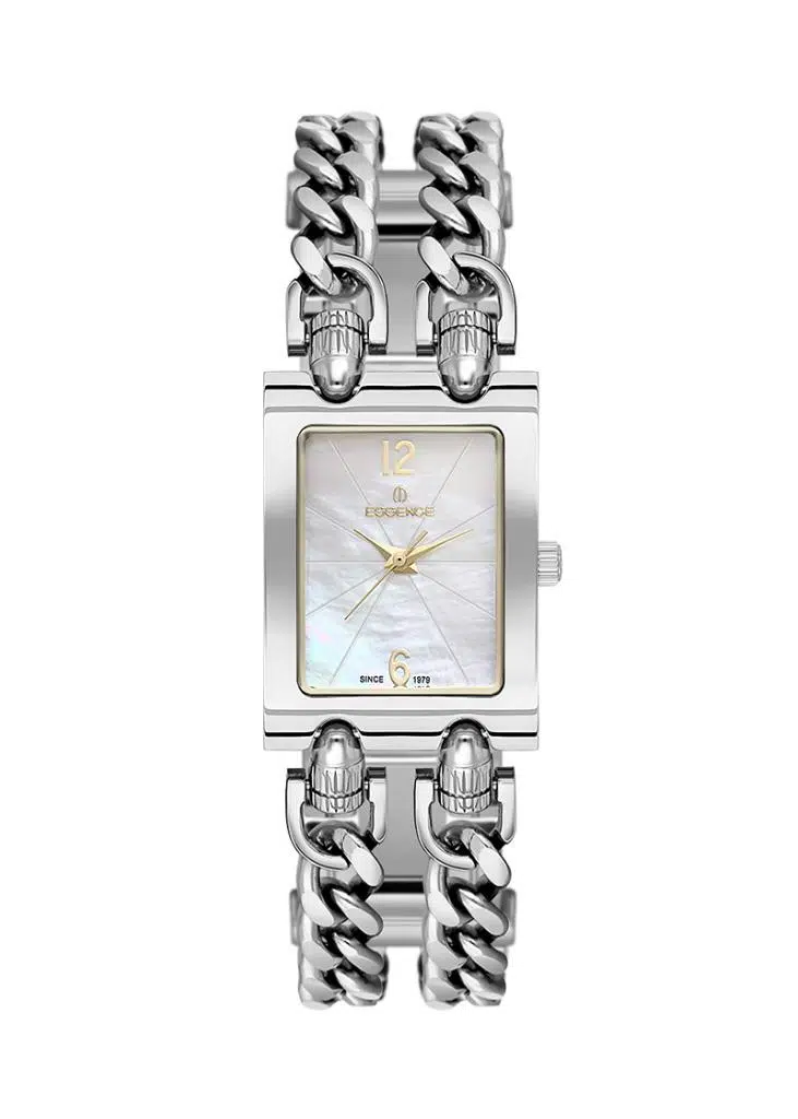 Essence D1232.220 Sedefli Dikdörtgen Kadran Çelik Kordon Çelik Kasa 5 ATM Suya Dayanıklı Metalik Renk Kadın Kol Saati
