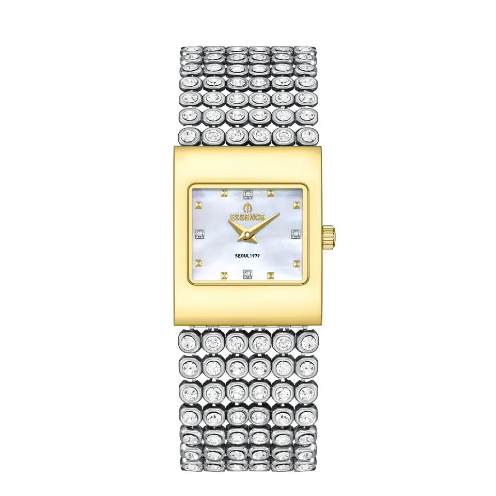Essence ES6974FE.220 Taşlı Tasarım Kare Kadran 5 Atm Suya Dayanıklı Metalik-Altın Renk Kadın Kol Saati