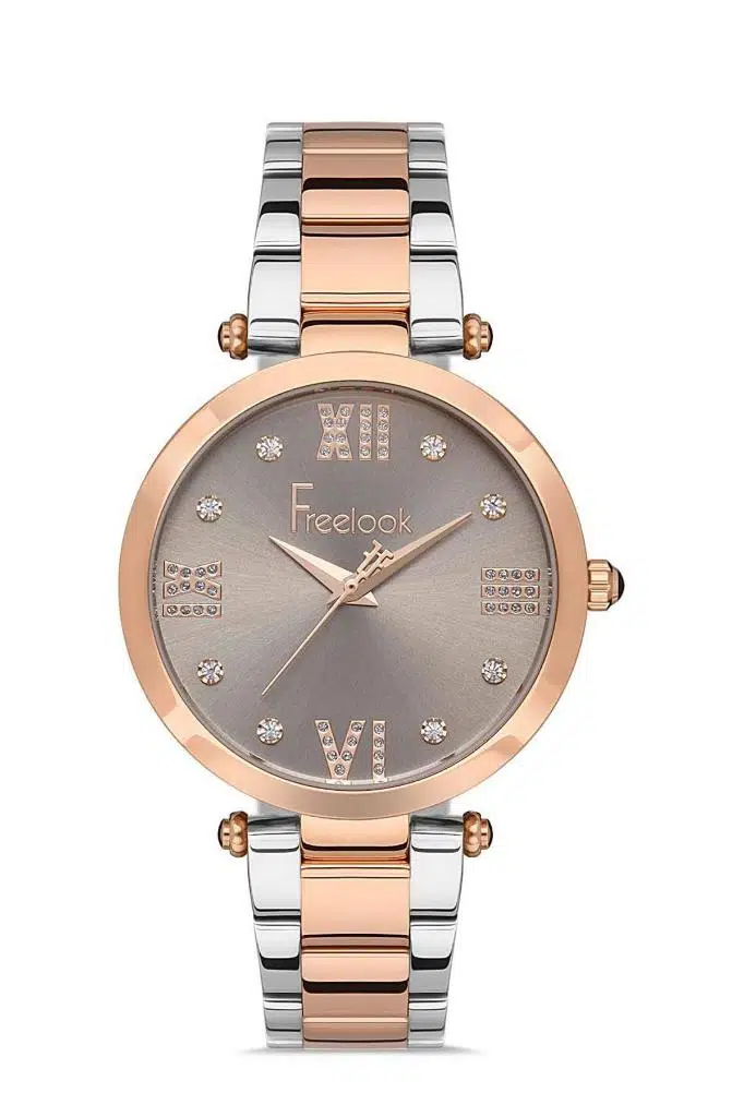 Freelook FL.1.10315.6 Taşlı Tasarım 5 ATM Suya Dayanıklı Çelik Kordon Rose-Gümüş Kadın Kol Saati