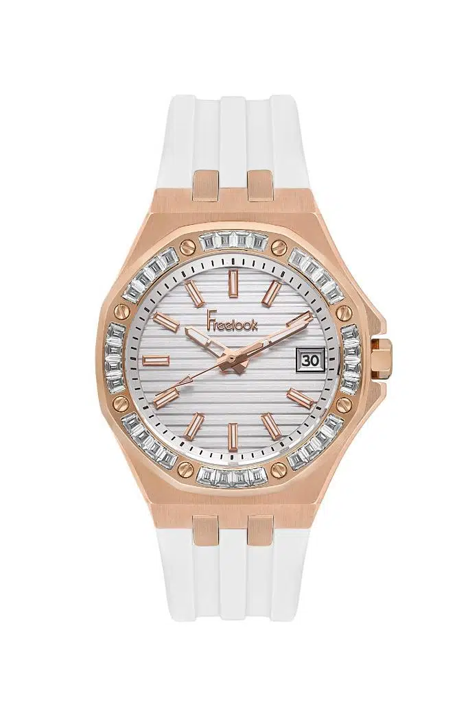 Freelook FL.1.10452-4 Silikon Kordon Taşlı Tasarım Takvimli Beyaz Renk Kadın Kol Saati