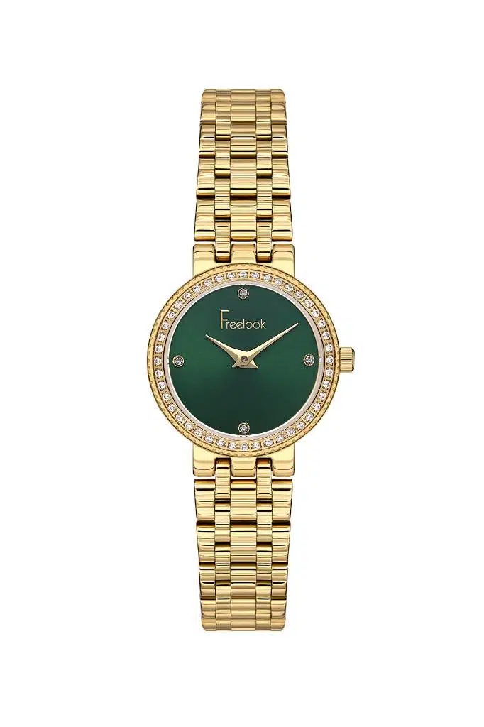 Freelook FL.1.10482-4 Taşlı Tasarım 5 ATM Suya Dayanıklı Çelik Kordon Altın Renk Kadın Kol Saati