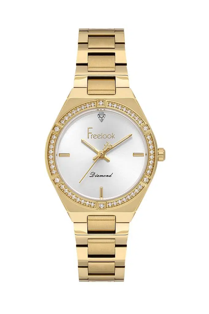 Freelook FL.1.10494-2 Taşlı Tasarım 5 ATM Suya Dayanıklı Çelik Kordon Altın Renk Kadın Kol Saati