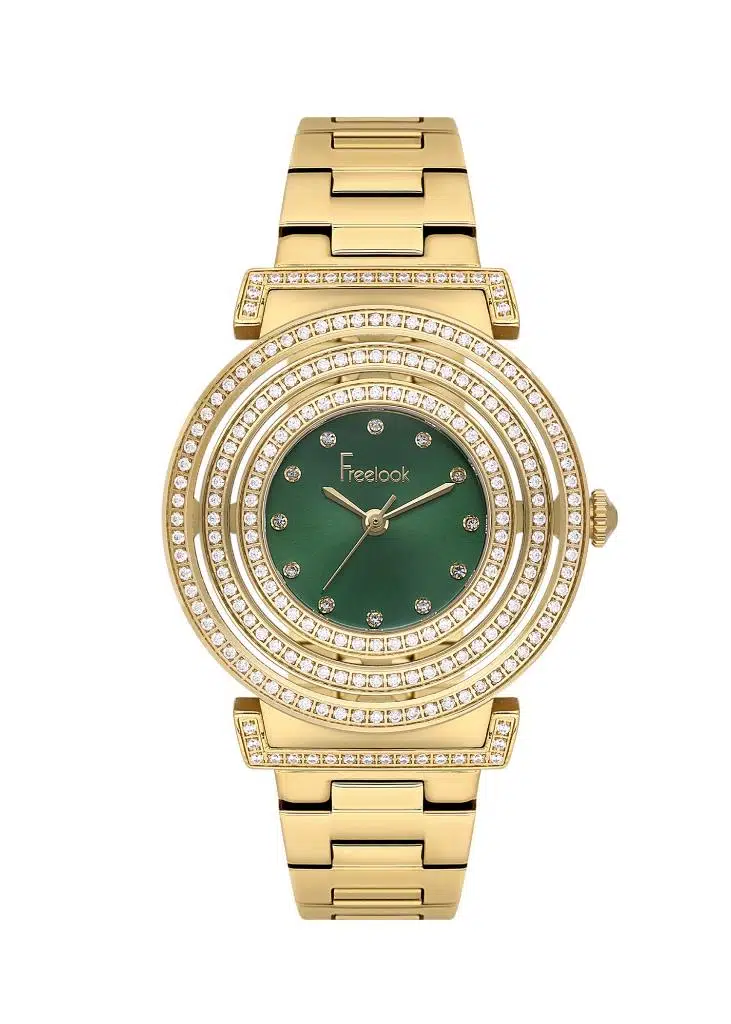 Freelook FL.1.10501-4 Taşlı Tasarım 5 ATM Suya Dayanıklı Çelik Kasa Çelik Kordon Altın Renk Kadın Kol Saati