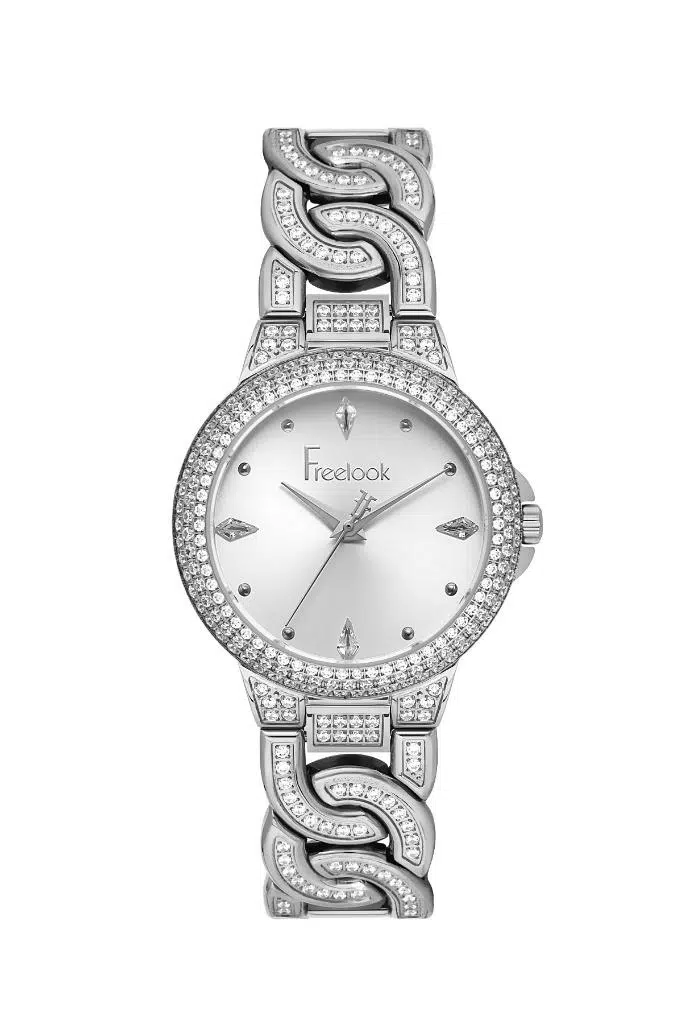 Freelook FL.1.10507-1 Taşlı Tasarım 5 ATM Suya Dayanıklı Çelik Kasa Çelik Kordon Metalik Renk Kadın Kol Saati