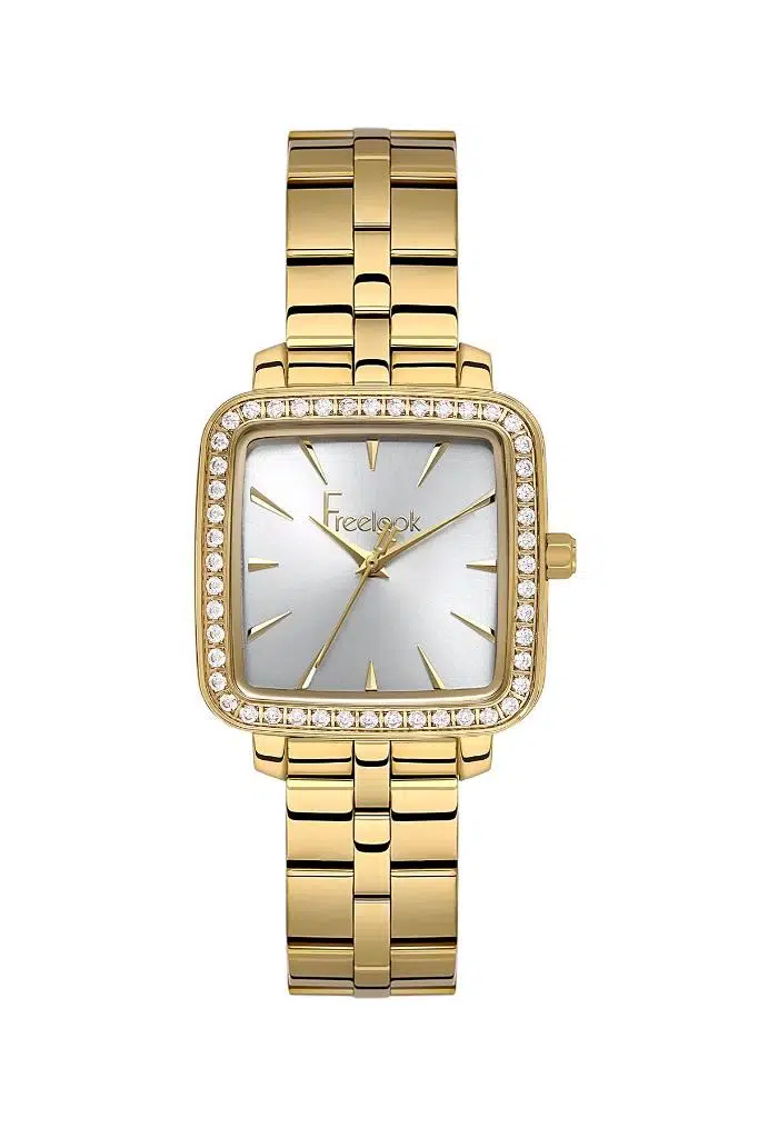 Etiketler | Freelook FL.1.10512-5 Taşlı Tasarım 5 ATM Suya Dayanıklı Çelik Kordon Altın Renk Kadın Kol Saati |