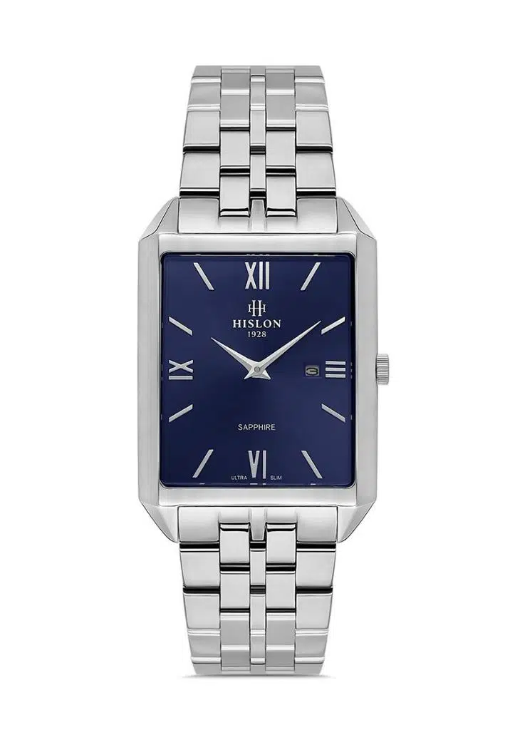 Hislon CL150S-11SS Safir Camlı Takvimli Çelik Kordonlu Dikdörtgen Kadran Metalik Renk Erkek Kol Saati
