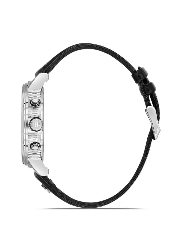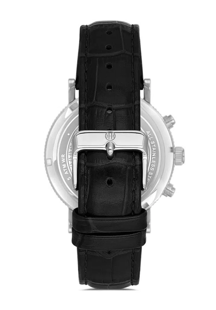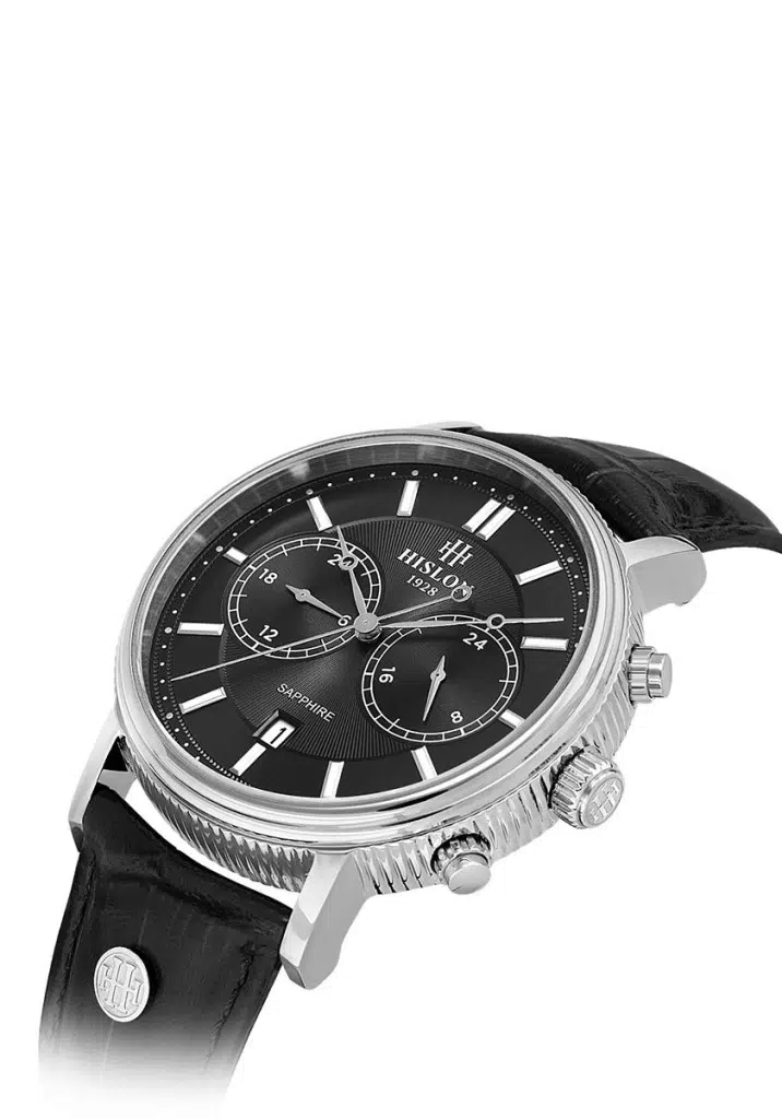 Hislon DT121S-04BS Yansıma Önleyici Safir Camlı Deri Kordon Çelik Kasa 5 ATM Suya Dayanıklı Siyah Renk Erkek Kol Saati