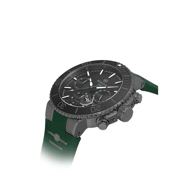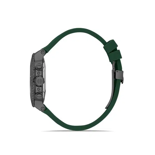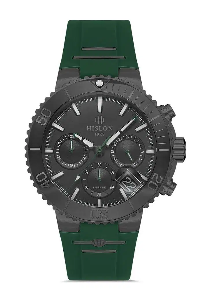 Hislon MS147N-15YN Yansıma Önleyici Safir Cam Silikon Kordon Çelik Kasa 10 ATM Suya Dayanıklı Yeşil Renk Erkek Kol Saati