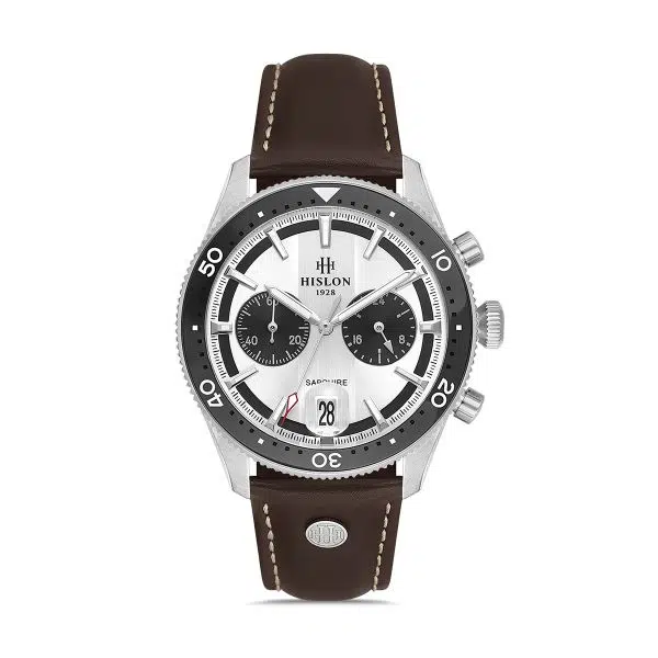 Hislon MS154T-02KS Yansıma Önleyici Seramik Çerçeve Safir Camlı Deri Kordon Çelik Kasa 10 ATM Suya Dayanıklı Kahverengi Renk Erkek Kol Saati