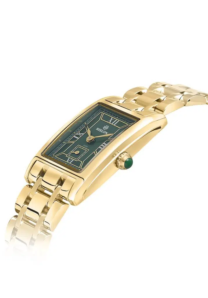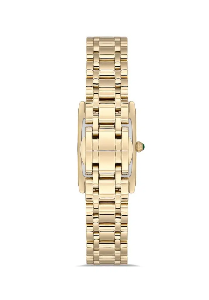 Hislon QL149G-15SG Dikdörtgen Kadran Safir Çizilmez Cam Altın Renk Kadın Kol Saati