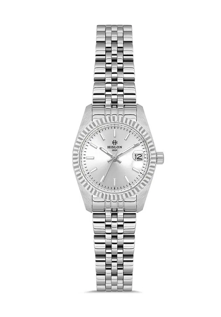 Hislon QL155S-02SS Safir Çizilmez Cam Bombeli Takvim Metalik Renk Kadın Kol Saati