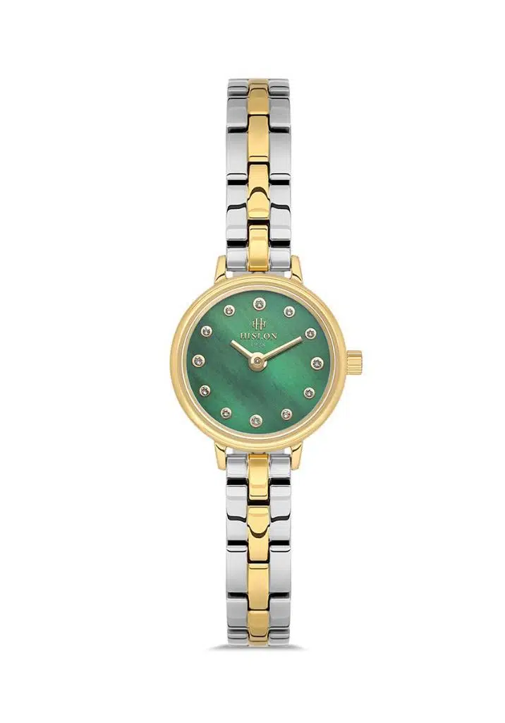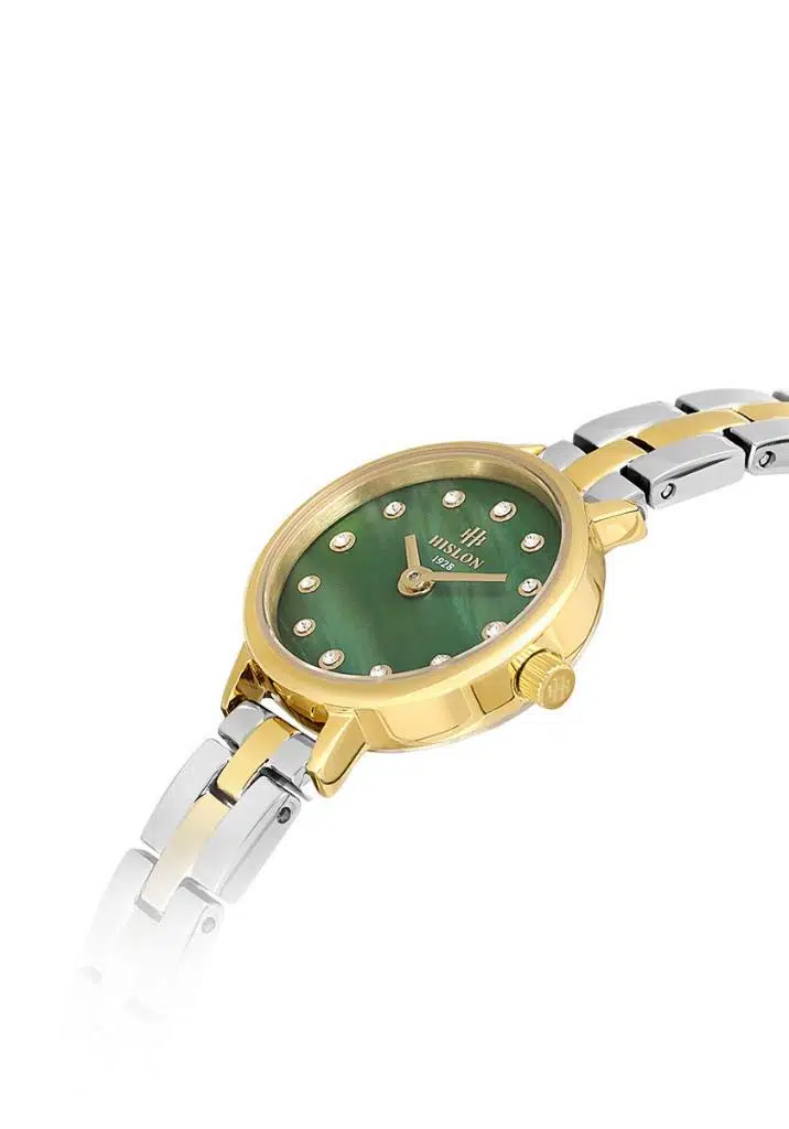 Hislon QL181T-15SG Safir Camlı Taşlı Tasarım Çelik Kordon Çelik Kasa 3 ATM Suya Dayanıklı Metalik-Altın Renk Kadın Kol Saati