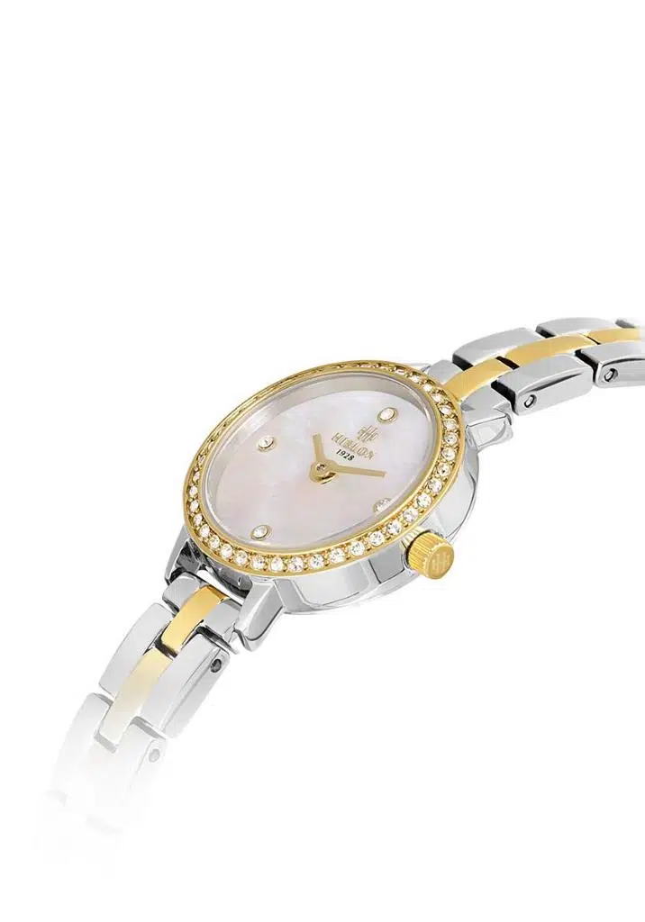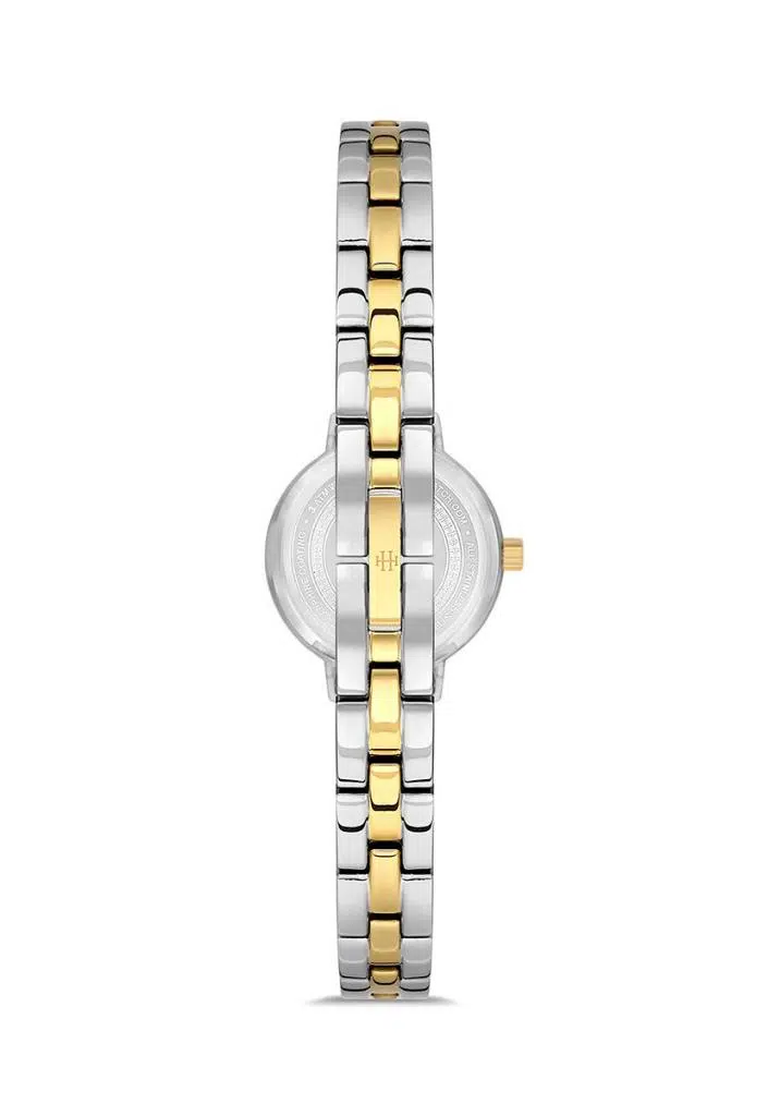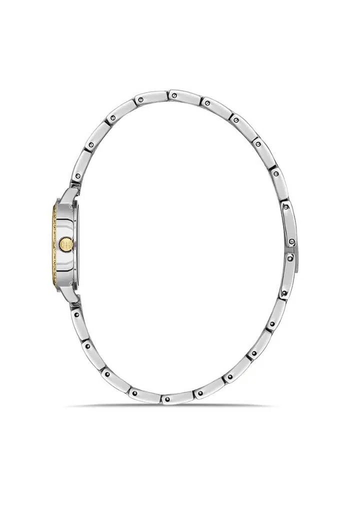 Hislon QL182T-09SG Safir Camlı Taşlı Tasarım Çelik Kordon Çelik Kasa 3 ATM Suya Dayanıklı Metalik-Altın Renk Kadın Kol Saati