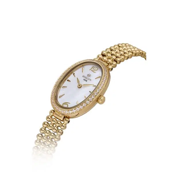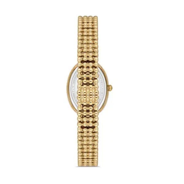 Hislon QL185G-09SG Taşlı Tasarım Oval Kadran Çelik Kordon Çelik Kasa 3 ATM Suya Dayanıklı Altın Renk Kadın Kol Saati