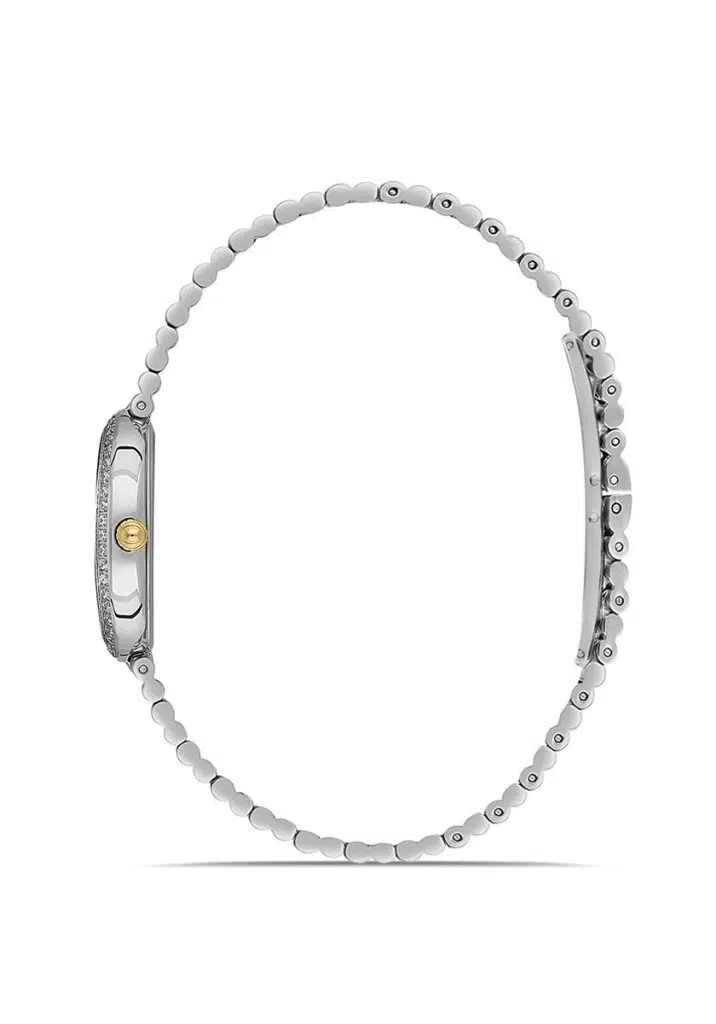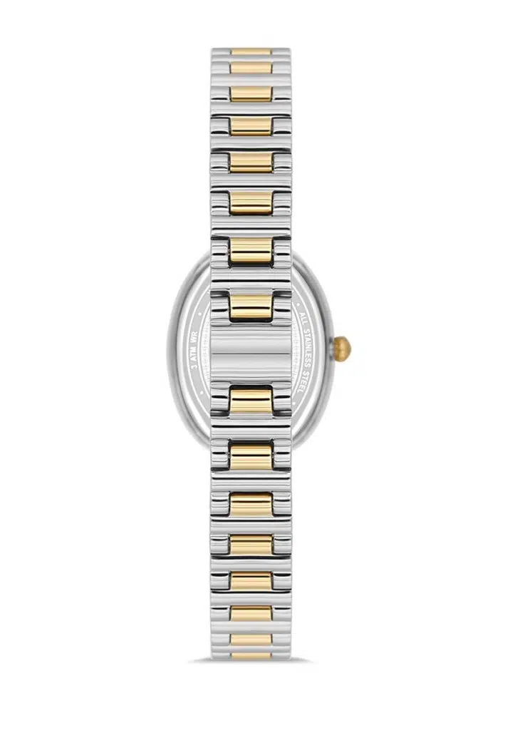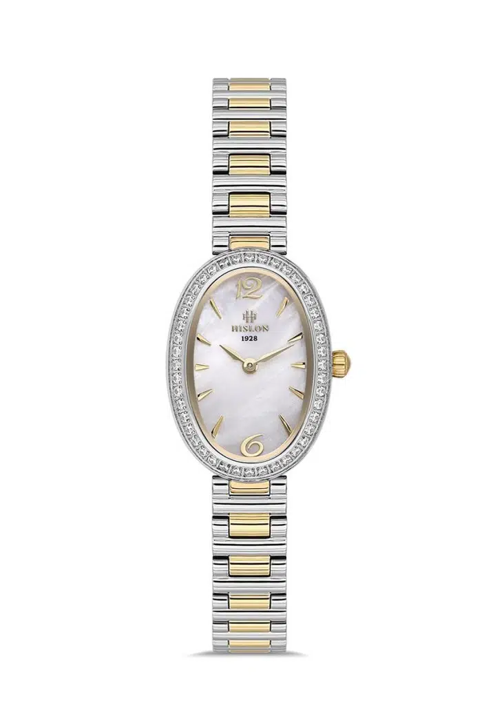 Hislon QL186T-09SG Taşlı Tasarım Sedefli Oval Kadranlı Çelik Kordon Çelik Kasa 3 ATM Suya Dayanıklı Metalik-Altın Renk Kadın Kol Saati