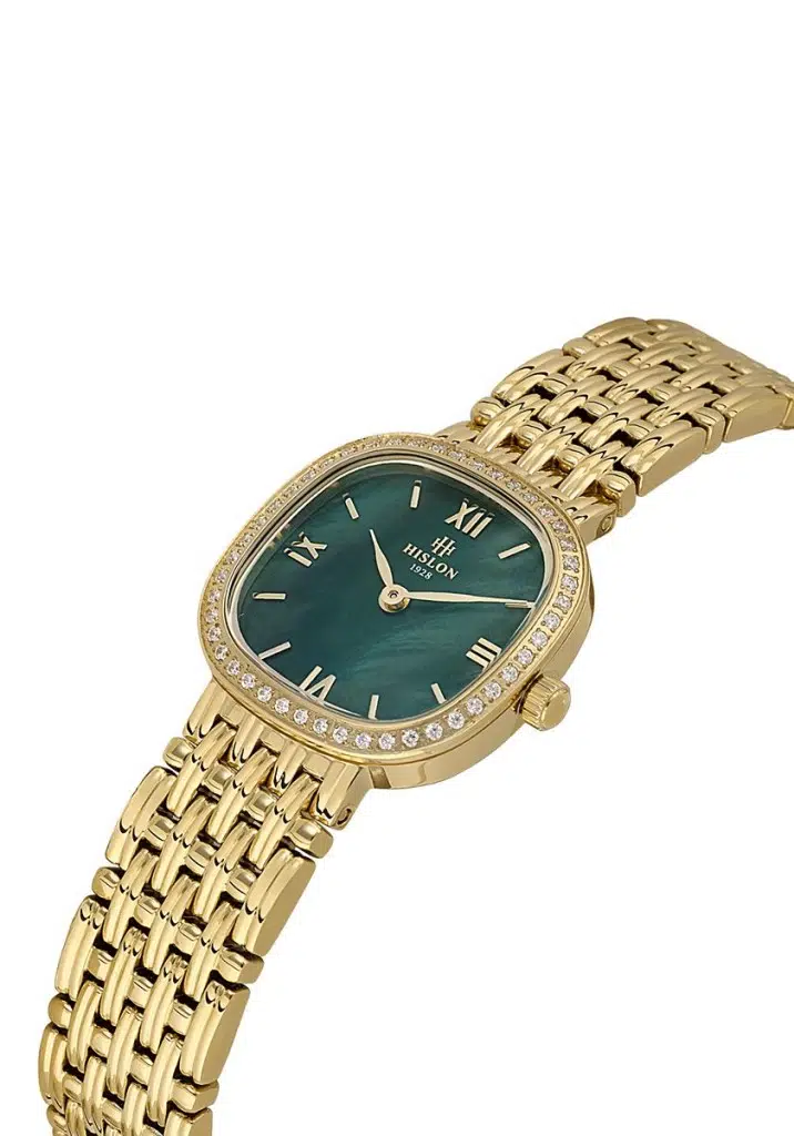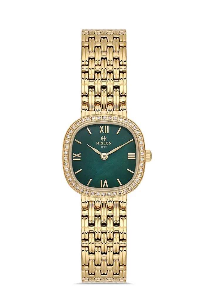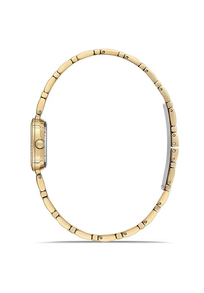 Hislon QL190G-15SG Taşlı Tasarım Kare Kadranlı Çelik Kordon Çelik Kasa 3 ATM Suya Dayanıklı Altın Renk Kadın Kol Saati
