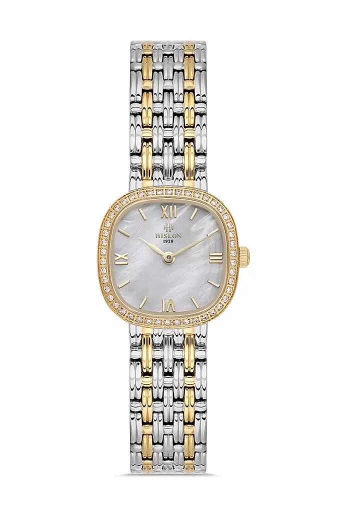 Hislon QL190T-09SG Taşlı Tasarım Sedefli Kare Kadranlı Çelik Kordon Çelik Kasa 3 ATM Suya Dayanıklı Metalik-Altın Renk Kadın Kol Saati