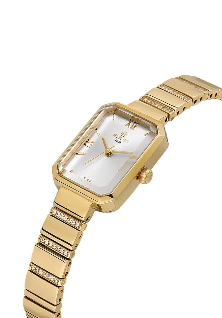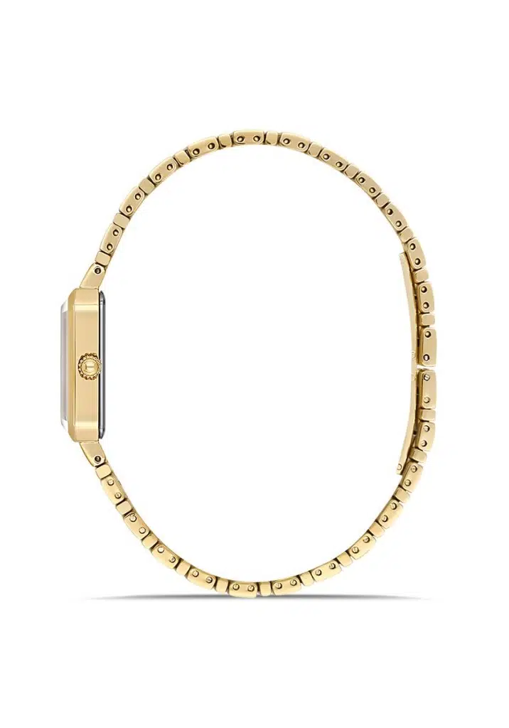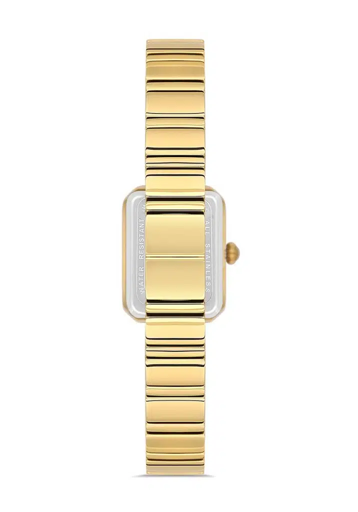 Hislon QL191G-02SG Taşlı Tasarım Dikdörtgen Kadranlı Çelik Kordon Çelik Kasa 3 ATM Suya Dayanıklı Altın Renk Kadın Kol Saati