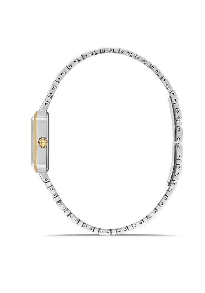 Hislon QL191T-02SG Taşlı Tasarım Dikdörtgen Kadranlı Çelik Kordon Çelik Kasa 3 ATM Suya Dayanıklı Metalik-Altın Renk Kadın Kol Saati