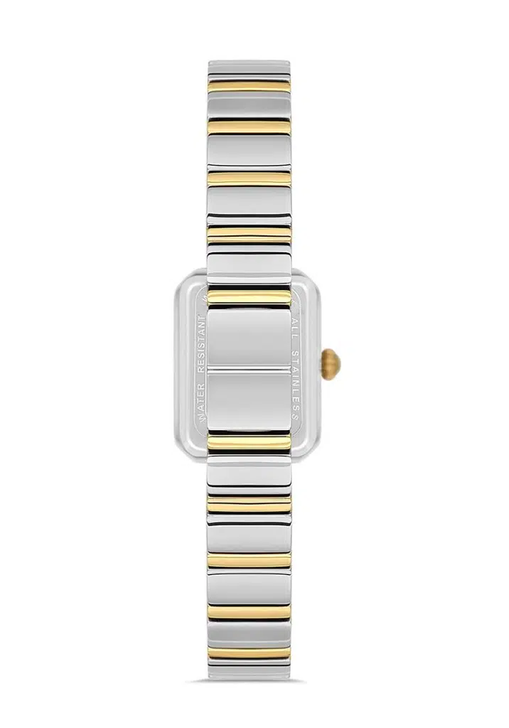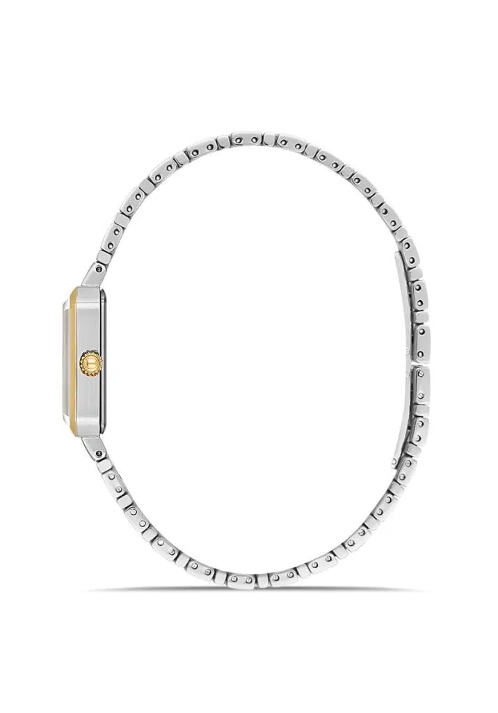 Hislon QL191T-15SG Taşlı Tasarım Dikdörtgen Kadranlı Çelik Kordon Çelik Kasa 3 ATM Suya Dayanıklı Metalik-Altın Renk Kadın Kol Saati