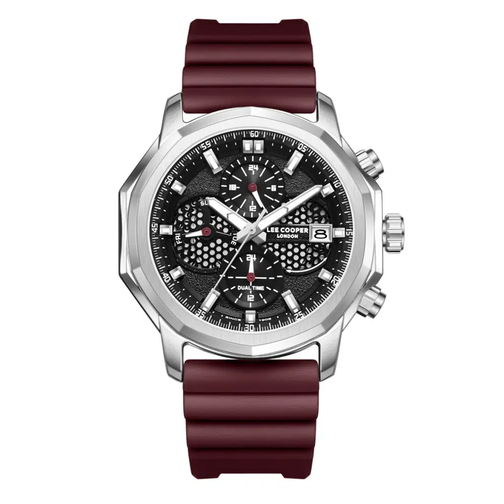 Etiketler | Lee Cooper LC08238.358 Silikon Kordon Metal Kasa 5 ATM Suya Dayanıklı Bordo Renk Erkek Kol Saati |