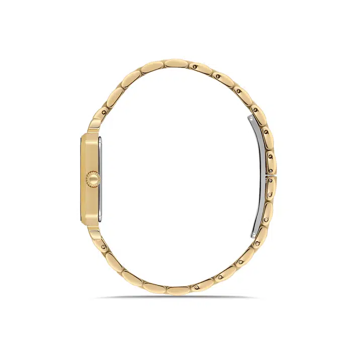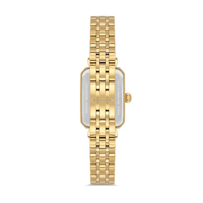 Momentus CS223G-15SG Dikdörtgen Kadranlı Çelik Kordon Çelik Kasa 3 ATM Suya Dayanıklı Altın Renk Kadın Kol Saati
