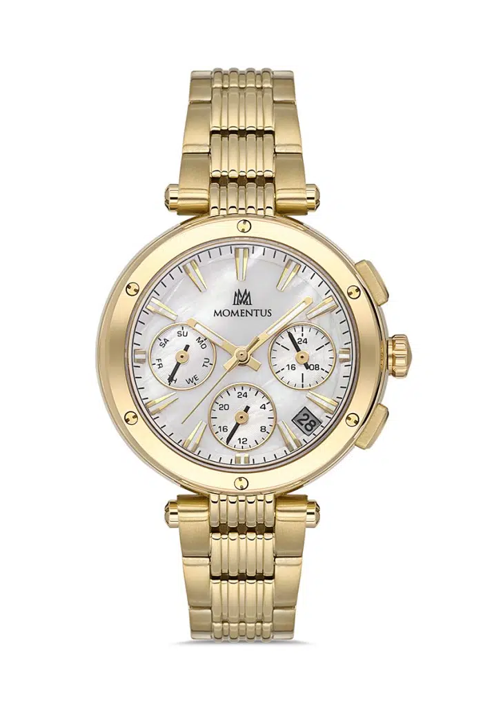 Momentus CS263G-09SG Çelik Kordon Çelik Kasa 10 ATM Suya Dayanıklı Altın Renk Kadın Kol Saati