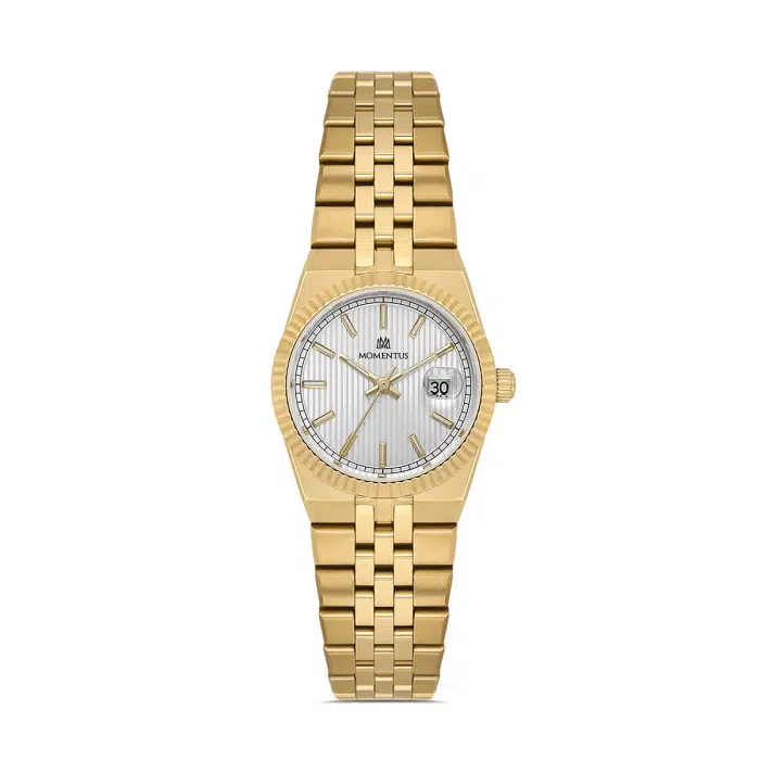 Momentus CS264G-02SG Çelik Kordon Çelik Kasa 5 ATM Suya Dayanıklı Altın Renk Kadın Kol Saati