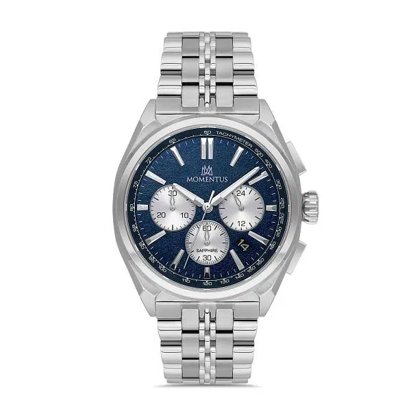 Momentus SM340S-11SS Tüm Fonksiyonları Aktif Safir Camlı Çelik Kordonlu 5 ATM Suya Dayanıklı Metalik Renk Erkek Kol Saati