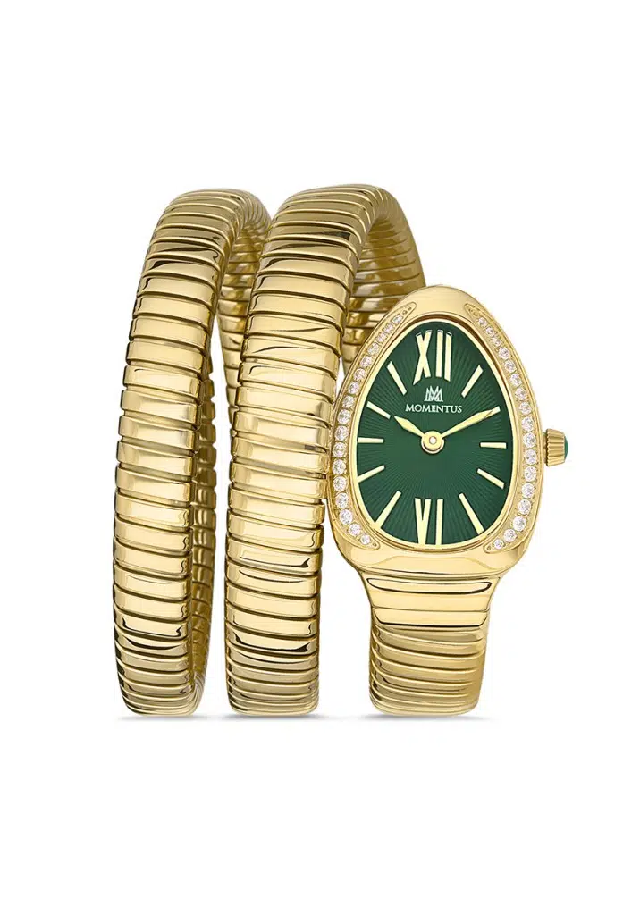 Momentus SS256G-15SG Taşlı Tasarım Yılan Model 3 Atm Suya Dayanıklı Altın Renk Kadın Kol Saati