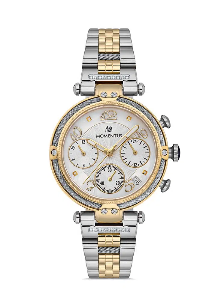Momentus SS261T-02SG Fonksiyonlar Aktif Çelik Kasa Çelik Kordon Metalik-Altın Renk Kadın Kol Saati