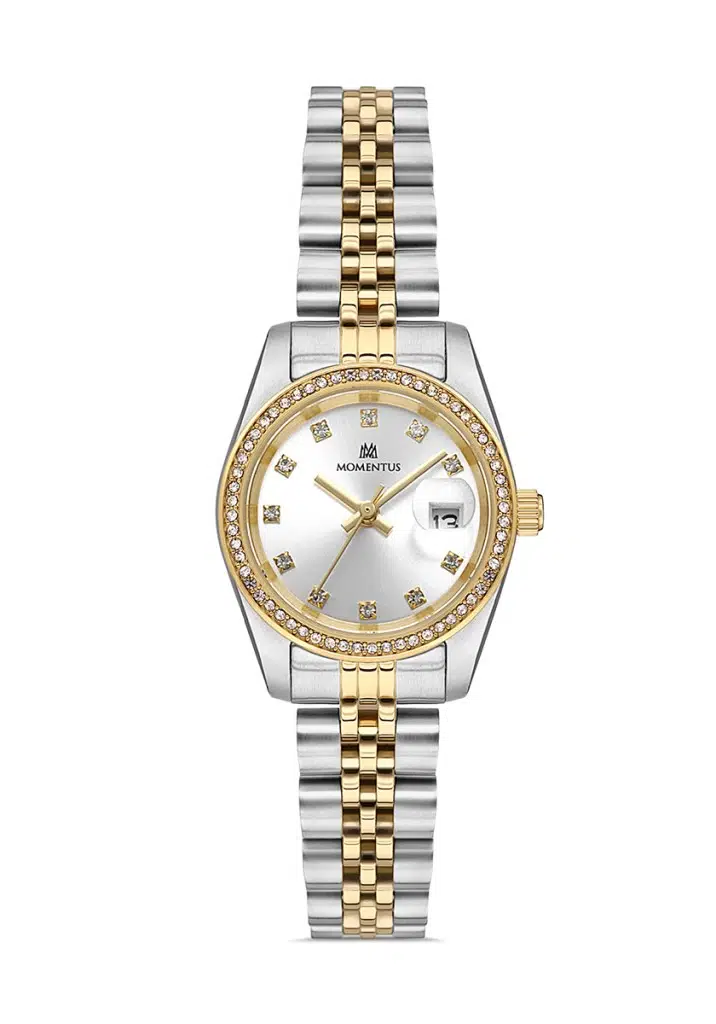 Momentus SW135T-02SG Taşlı Tasarım Bombeli Takvim 5 Atm Suya Dayanıklı Metalik-Altın Renk Kadın Kol Saati