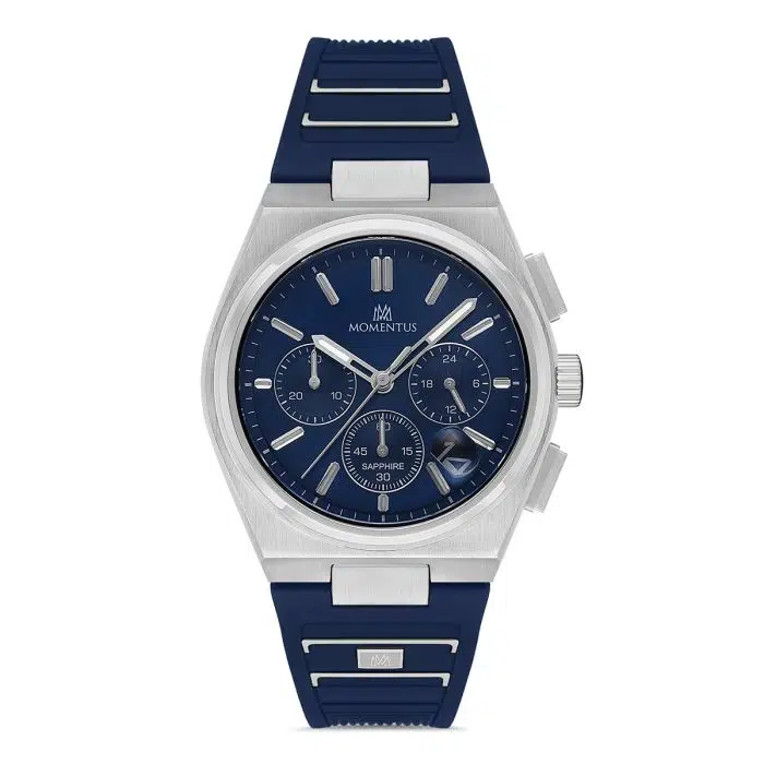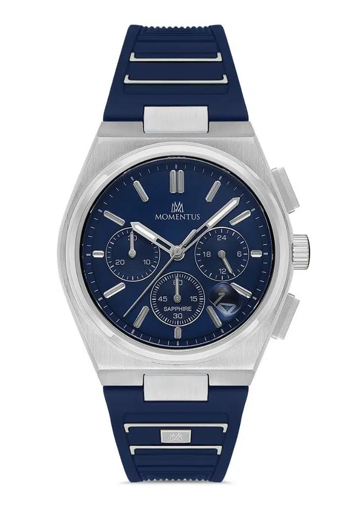 Momentus TM345S-11MS Safir Camlı Silikon Kordon Çelik Kasa 5 ATM Suya Dayanıklı Lacivert Renk Erkek Kol Saati