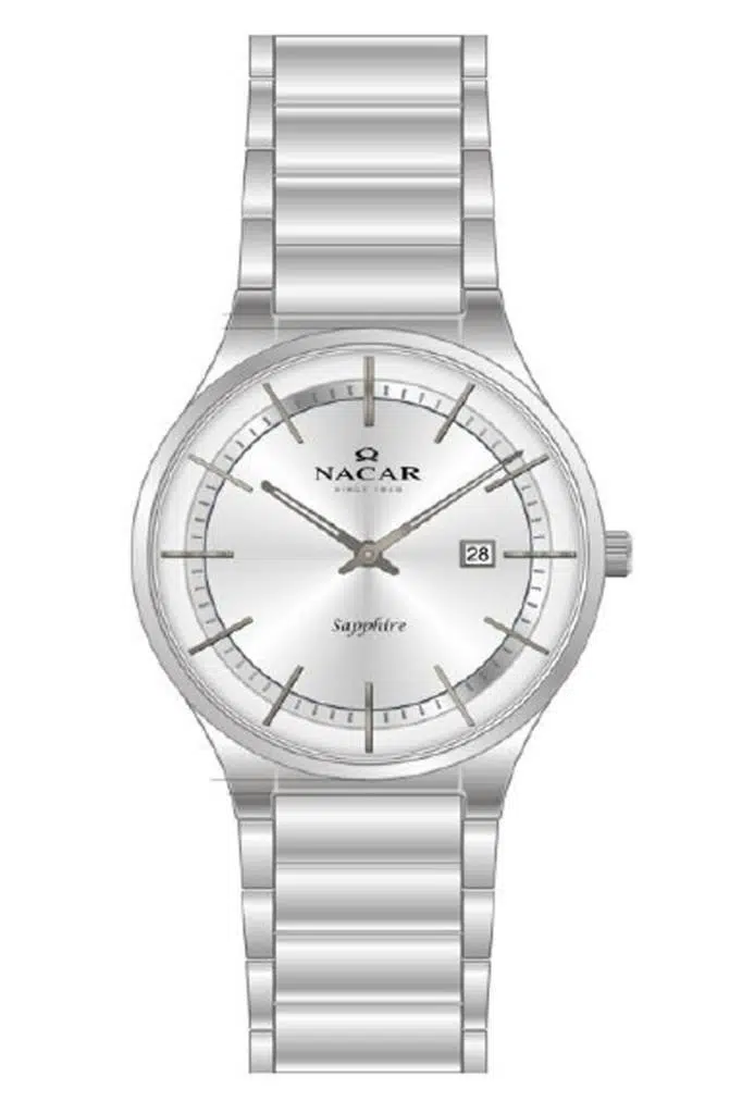 Nacar NC17-2960018-ASM Safir Camlı Çelik Kordon Çelik Kasa 5 ATM Suya Dayanıklı Metalik Renk Erkek Kol Saati